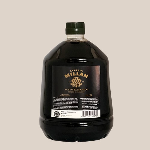 Es una aceto balsámico que lleva no menos de una año de añejamiento en barricas de roble francés y americano, está compuesto por mosto concentrado de uvas blancas (de nuestra propia producción ya que también tenemos bodegas) y vinagre de vino blanco variedad Ugni Blanc, luego del añejamiento se cocina a fuego lento (aproximadamente una semana de cocción) en un cocinador especial a llama, reduciendo el volumen a la mitad, así se obtiene un producto espeso y cremoso, de equilibrado paladar sin ningún tipo de colorantes ni conservantes, es un producto tan noble y sano como el aceite de oliva. De amplio uso en la gastronomía ya que sienta muy bien hasta con helados, carnes, quesos, pescados, entre varios usos más.
