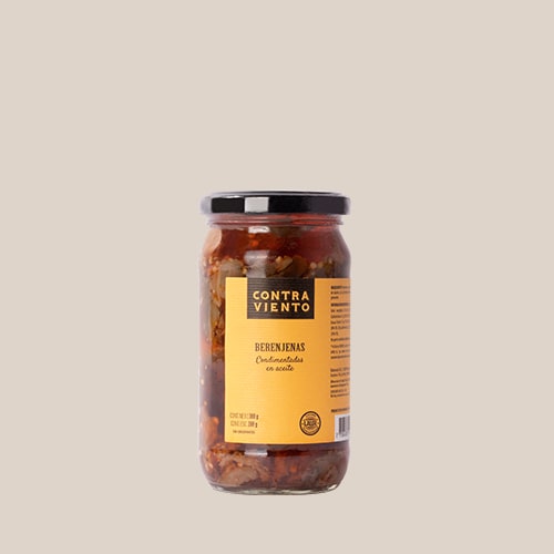 Berenjenas en conserva ContraViento, condimentadas en aceite y especias, perfectas para aperitivos o ensaladas
